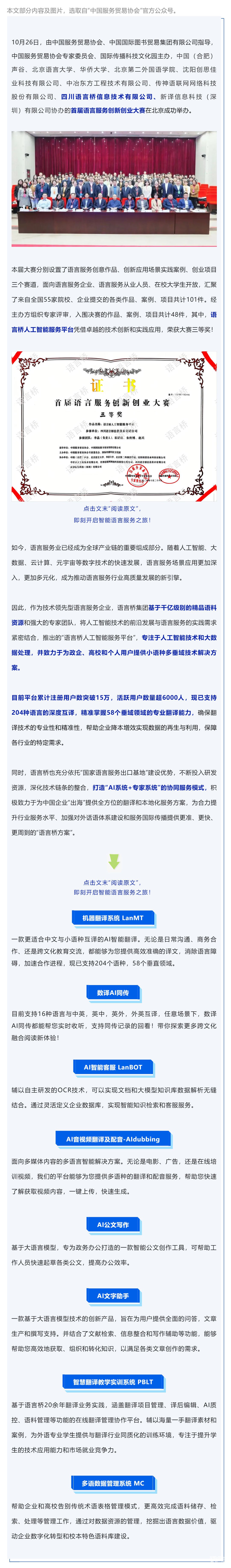 語(yǔ)言橋人工智能服務(wù)平臺(tái)榮獲首屆語(yǔ)言服務(wù)創(chuàng)新創(chuàng)業(yè)大賽三等獎(jiǎng)