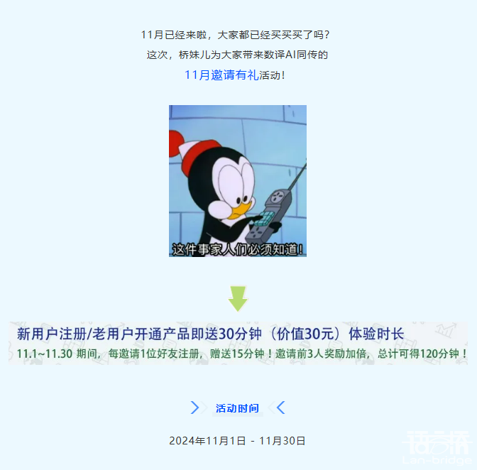 "更多活動(dòng)內(nèi)容請(qǐng)掃碼關(guān)注語言橋之聲公眾號(hào)相關(guān)推送 或直接復(fù)制鏈接地址: https://aitongchuan.dtranx.com 在瀏覽器中打開獲取"...[查看更多]