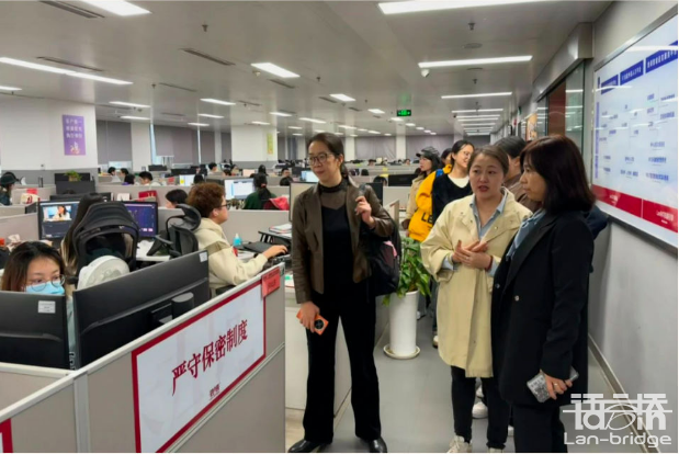 為深化校企合作,推動產學研深度融合,2024年11月7日,重慶醫科大學外國語學院副院長劉曉琴率隊,帶領教務與研究生管理科科長周俊、管理人員鄭欣蕊以及13名研究生,前往四川語言橋信息技術有限公司(以下簡稱“語言橋“)進行深度走訪調研。此次出訪旨在進一步深化校企合作,促進產學研深度融合,探索人才培養新模式,為社會輸送更多高素質、高技能的專業翻譯人才。語言橋校企合作事業部總監李璐熱情接待了劉曉琴一行。在李璐的引領下,學院團隊深入參觀了公司內部,全面了解了公司的整體架構、人員配置、工作環境以及多元化業務內容,直觀感受到語言橋在行業內的領先地位和專業實力。