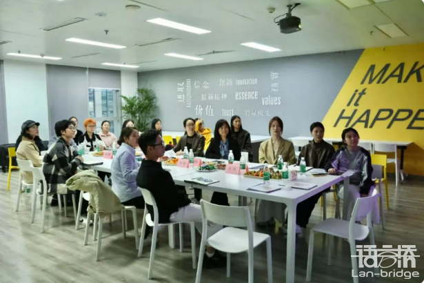 在隨后的座談調研中,雙方圍繞課程共建、A轉型、實習實踐等核心領域開展了交流。李璐詳細介紹了企業的發展歷程,特別強調了公司在推動產學研一體化、技術創新與人才培養方面的創新舉措與顯著成效。她指出,語言橋始終致力于搭建教育與產業的橋梁,通過與高校緊密合作,實現資源共享、優勢互補,共同為行業發展培育優質人才。A事業部經理趙兵則圍繞企業如何借助新興技術提升語言服務品質與效率,詳細闡述了語言橋的A!轉型戰略。他深入分析了在行業變革和技術驅動的新趨勢下,語言專業人才所面臨的新機遇與新挑戰,并強調了復合型、創新型人才培養的重要性。生命科學項目組經理馮麗君結合自身豐富的行業經驗,詳細介紹了生命醫藥行業翻譯要求和人才需求,并針對研究生的譯前基本素養、職業規劃、行業需求與企業實習培訓機制等同學們關心問題進行了耐心解答。