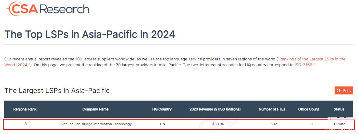 "The Slator 2025 Language Service Provider Index"原文鏈接如下:
