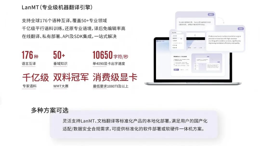 語言橋自主研發的LanMT專業級機翻引擎可提供176種語言的深度互譯,精準掌握50多個垂域的專業翻譯能力。