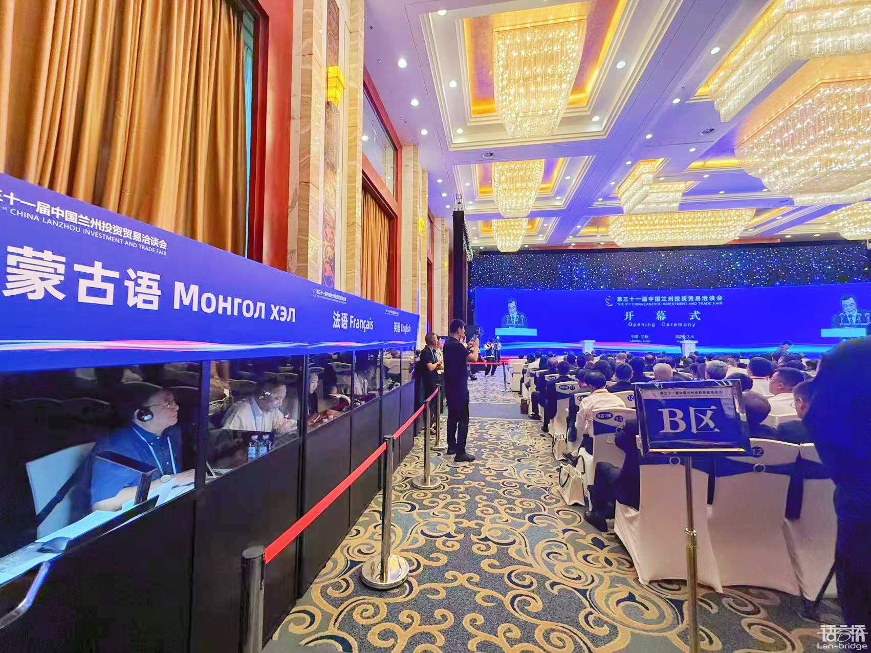 語言橋為本屆蘭洽會提供了英、法、蒙等多語種筆譯、同傳、交傳,圓滿保障了大會開幕式、第三屆甘肅省國際友好城市產業推介暨經貿合作對接活動、綠色中國•投資甘肅招商主體活動、主賓國推介對接活動、甘肅省新能源及新能源裝備進出口洽談對接會、歡迎晚宴、外賓會見等多項活動的順利開展。整個服務團隊用專業與熱忱為大會交付一份“有溫度、有力度”的答卷。