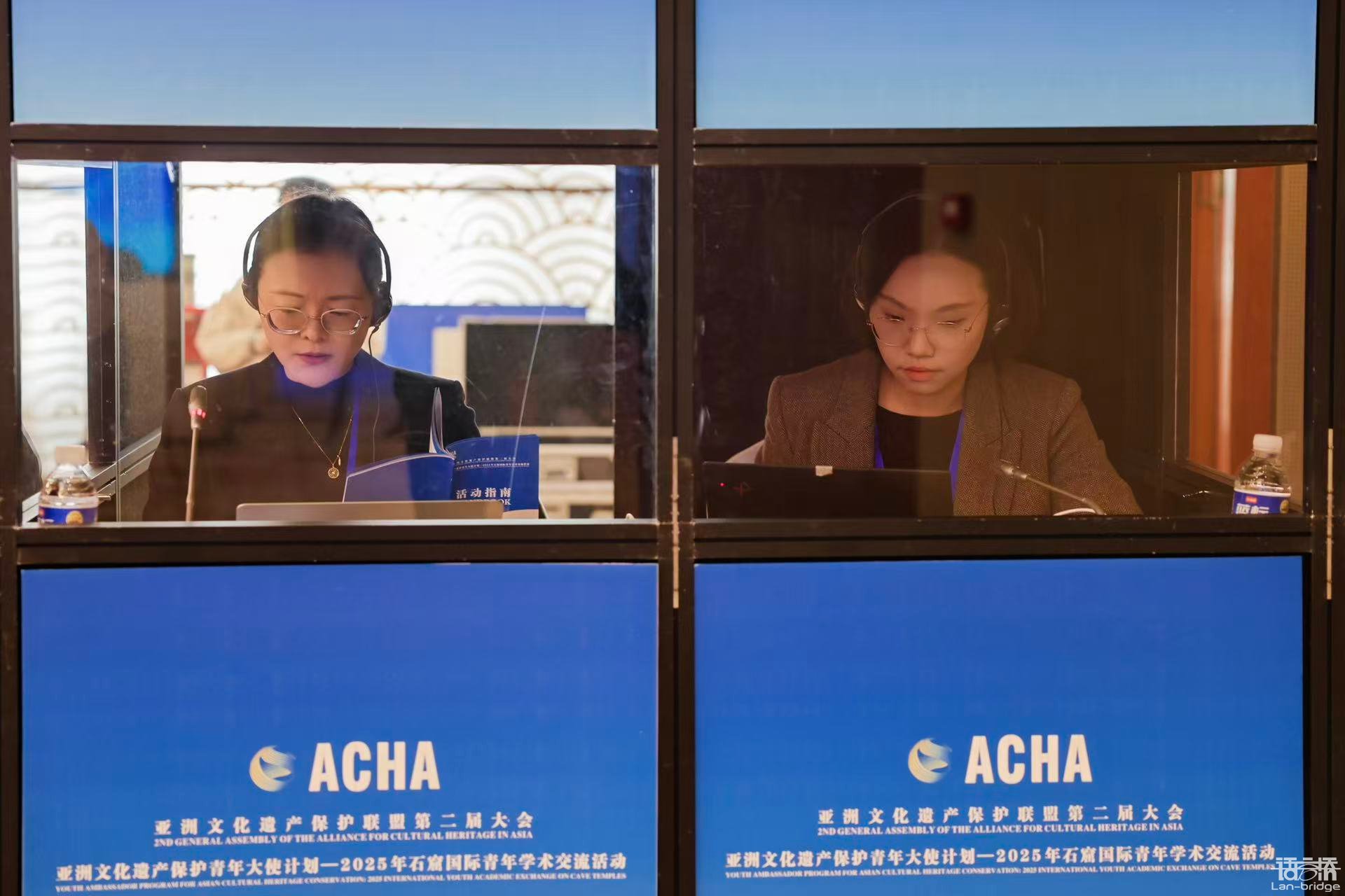 本次活動的口譯服務面臨空前挑戰。一方面,多位發言人在分享中大量引用古代文獻、石窟題記中的文言文與冷僻古語,需兼顧文字考據與語義傳達;另一方面,不同國家專家的發言帶有鮮明的地方口音,進一步增加了實時傳譯的難度。對此,語言橋同聲傳譯團隊依托扎實的中文古文功底,以及豐富的臨場應變經驗,在極短時間內完成對艱深內容的精準理解、消化與重組,不僅準確還原原文語義,更以地道、流暢的目標語言傳遞文化內涵,讓跨文化交流無任何障礙。